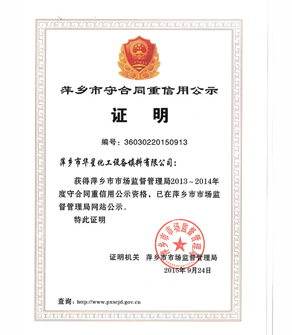 • 萍鄉(xiāng)市守合同重信用公示證書
