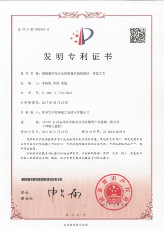 • 脫硫脫硝混合反應(yīng)裝置及脫硫脫硝一體化工藝
