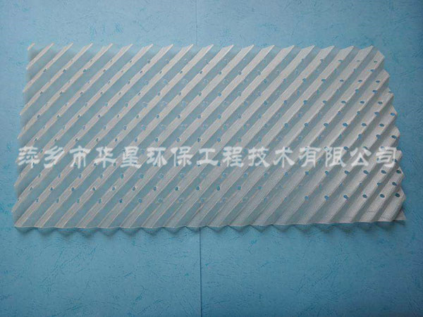 塑料規(guī)整填料具有重量輕,通量大、壓降低、比表面積高、易更換等優(yōu)點。絲網(wǎng)波紋填料由聚丙烯與聚丙烯腈線混合編織網(wǎng)組成。波紋填料可采用聚丙烯PVDF板,為提高傳質(zhì)效率,板上可開孔。塑料規(guī)整填料有:板波紋填料、孔板波紋填料、絲網(wǎng)波紋填料和斜波紋填料等。